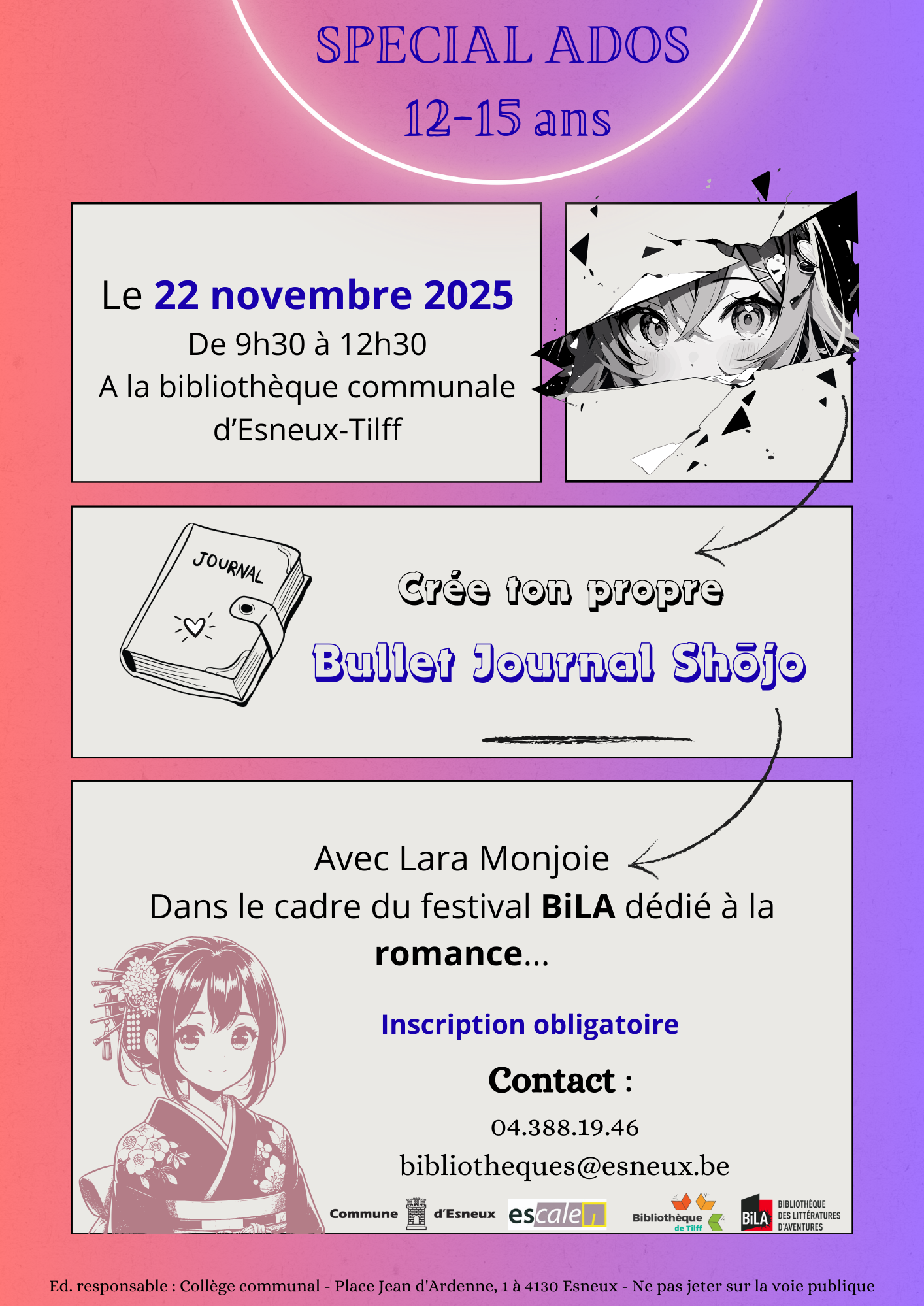 Pour les ados du secondaire. Le 5 novembre 2025, de 15h-17h, sur inscription.