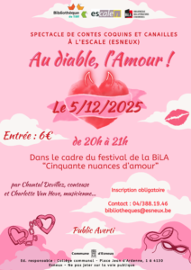 En plus d’accueillir l’exposition de la BiLA sur la romance du 28/10/2025 au 20/12/2025, la bibliothèque d’Arlon vous propose toute sorte d’animations autour du thème durant cette période.