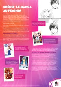 Toujours largement plébiscité, surtout par un public jeune et adolescent, le manga se décline en de multiples sous-genres et catégories éditoriales. Alors que Naruto, Dragon Ball ou encore One Piece connaissent un succès populaire et médiatique mondial, une autre catégorie de mangas, pourtant presque aussi populaire, ne bénéficient pas de la même attention : le shojo. Désignant les mangas destinés aux jeunes filles, le shojo peut pourtant se targuer de connaitre d’innombrables séries déclinées dans tous les genres et dont certaines, comme Sailor Moon ou encore Card Captor Sakura, connaissent une renommée mondiale. C’est à la découverte de cette partie du paysage du manga que l’exposition se consacre.